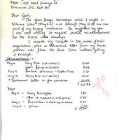 handwritten letter from Adaline Ogorman listing reimbursement for a recent workshop in Williams Lake