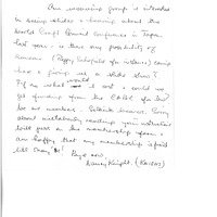 handwritten letter from Nancy Knight to Gail Rogers regarding a weaving group wanting to see slides from the recent CABC conference