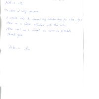 Letter from Rebecca Liou requesting to renew her membership for 1996-1997. No cheque attached.