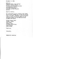 (found inside item 6) draft Typed letter from unknown of "membership committee" to Dawn Wallace, the Arts BC managing editor for the cultural services branch of the meinistry of provinical secretary and government services about asking for the addresses of specific members of the 1985-1986 BC Arts Board