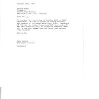 (attached to item 28) Typed letter to Sheila Weger from Gail Rogers in response about membership fees.