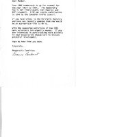 Typed letter to Donna Johnstone from Bernice Ruebsaat of the CABC membership committee reminding Linda to renew her membership. Note on back reads: “Please send receipt for tax purposes”