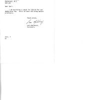 Small typed note from Lois Malsbury of Hudson's Hope Arts Council noting an enclosed cheque for a membership fee. Apologizes for sending wrong amount previous time