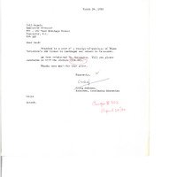 typed letter from Craig Andrews at Selkirk College to Gail Rogers regarding a copy of a receipt for Diane Mortensen's air ticket for the reimbursement of $36 (writing on page says 'cheque#302 april28 1980')