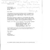 typed letter from Ethel Barton to Orland Larson regarding a response on behalf of an injured Sheila with jewellery workshop dates - written note on top to Gail and 'Centre for Continuing Education'
