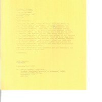 (attached to item 120) typed response from Gail Rogers to Rosemary Rising with information on covering travel costs and providing weaving teachers for a workshop