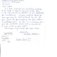 handwritten note from Christine Mathews to the CABC inquiring about cost of travel and millage rates - writing on bottom lists crossed out information and 'replied august 15th'