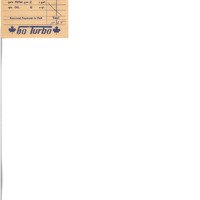 orange receipt paper, print ink, pen ink, staple holes