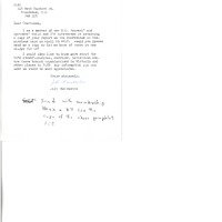typed letter from Jill Chamberlin to the CABC requesting a copy of their report on the Conference on Commissions held at BCIT as well as the CABC itself - note on bottom says 'send with membership'