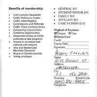(attached to item 1)"It's time to renew your membership with Crafts Association of British Columbia" - Peggy Collins