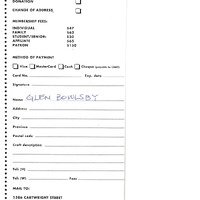 "Membership application form": Glen Bowlsby. Note at top reads "Paid to CH June 7"