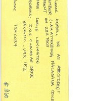 "It's Time to renew!" page with note written in pen on back: "Please enroll me as a student member. (I am attending Malaspina college/un)….". Another note with a different pen reads: "#1860"