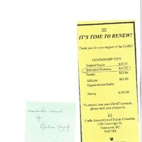 Membership application form with sticky note on top that reads "Membership renewal for Markian Olynyk"