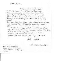 Handwritten letter from Mrs. R Kahalepuna to the CABC informing them of her injury and asking to extend her membership longer while she wanits for money to come in for disability pension.
