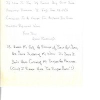 (attached to item 59) Handwritten letter from Adrian Mulholland to the CABC providing information about his practice with the intention of being included in a catalogue. Adrian mentions including his card, a picture of him at work and slides of his work. Asks for the slides to be returned.