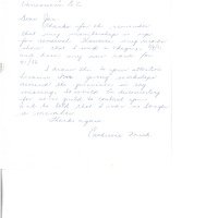Handwritten letter from Catherine Mick to Jan of CABC reminding the CABC that she has already paid for her 81/82 membership