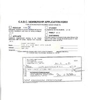 Photocopied membership application form for Cindy Smithers including a photocopy of a cheque