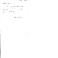 Handwritten letter from Jean Kares to Gail Rogers providing an enclosed membership fee (not found with note)