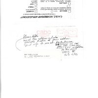 Note on unknown publication (possibly Craft Contacts) sent to Ray McAllister. Note asks to delete old addresses and to add new address